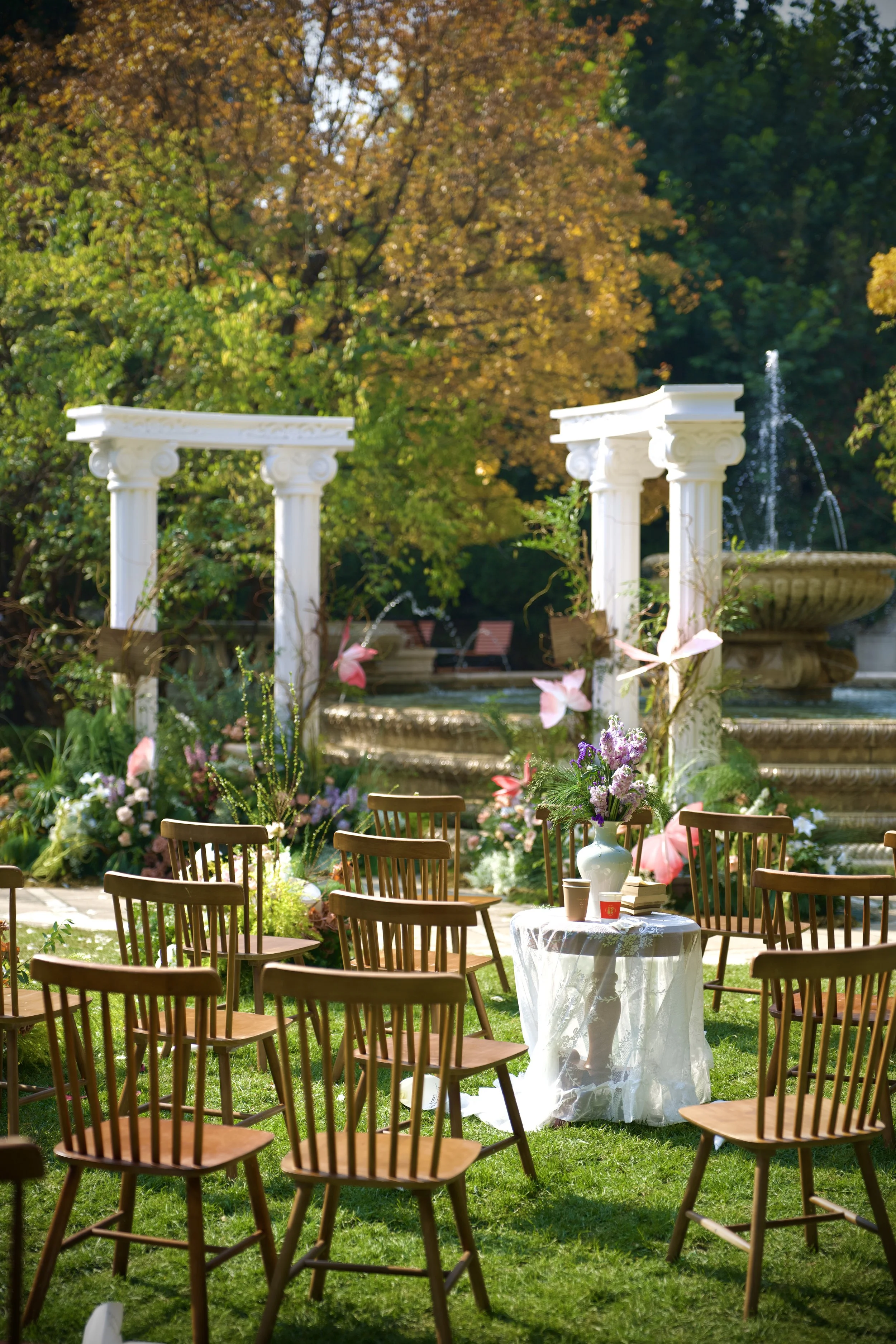 One wedding became two — round tables